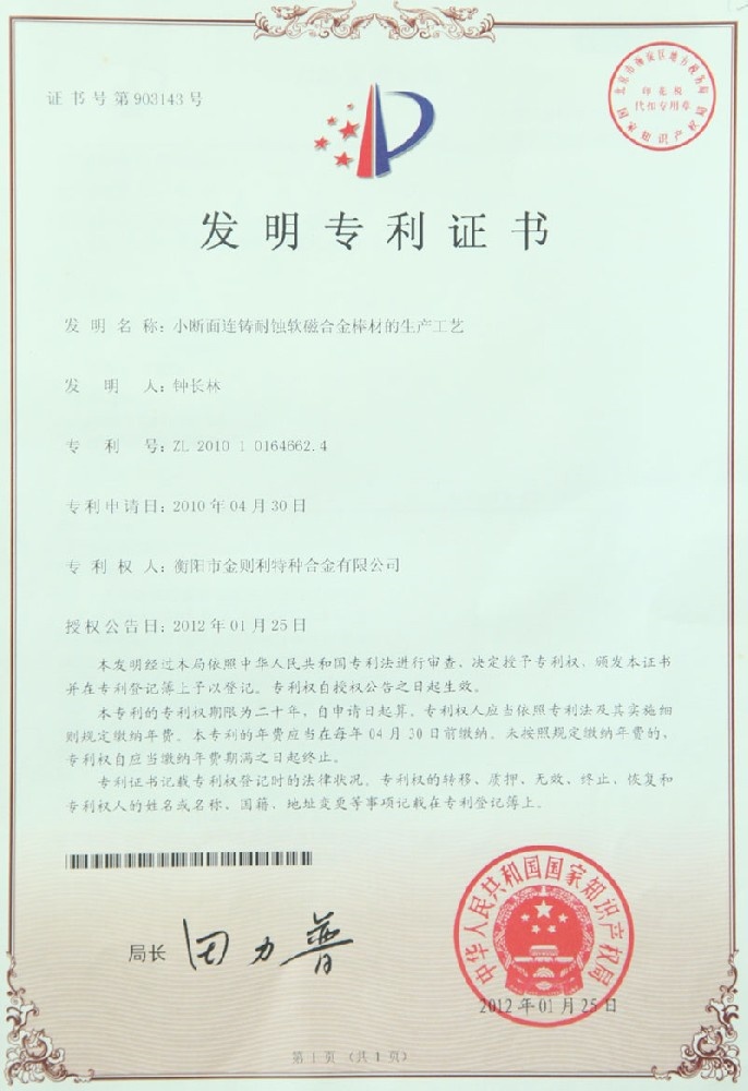 衡陽(yáng)市金則利特種合金股份有限公司成立于一九九九年十二月,注冊(cè)資本人民幣兩千兩百萬(wàn)元。注冊(cè)地址:衡陽(yáng)市雁峰區(qū)白沙洲工業(yè)園長(zhǎng)塘路2號(hào)。公司主營(yíng)耐蝕軟磁合金,為湖南省高新技術(shù)企業(yè)。公司自成立以來,即致力于耐蝕軟磁合金的研發(fā)。 研制出的JL-31(00Cr13si2Pb)、JL-31B(00Cr13si2)、JL-31BS(00Cr13Si2S)、JL-37B(0Cr17Si2)、JL-37(0Cr17···